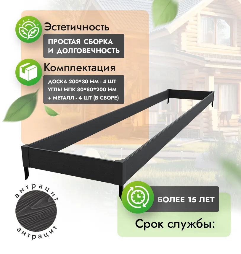 • Комплект грядок ДПК прослужит минимум 15 лет даже в самых агрессивных условиях.